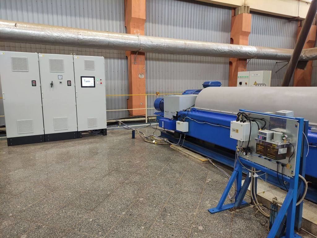 Оборудование установлено в цехе обезвоживания завода по сжиганию осадка и работает в автоматическом режиме круглосуточно.