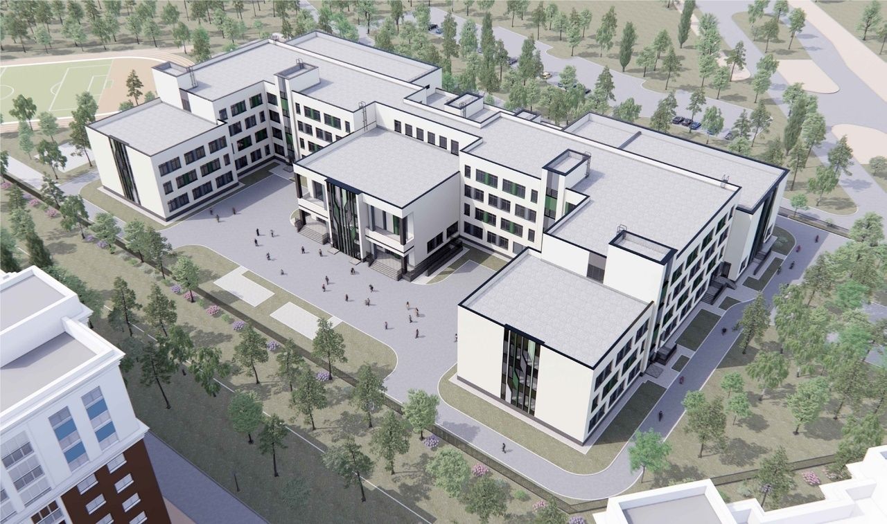 Новая школа рассчитана на 825 учеников и 33 класса. С южной стороны здания расположится курдонер – открытое пространство для проведения линеек и других мероприятий. В северо-западной части территории построят стадион и спортивные площадки.