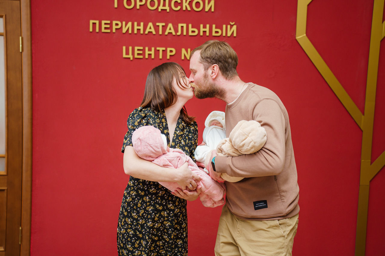На выписке счастливую многодетную маму встречал любимый муж Михаил, а дома ждали два старших брата.
