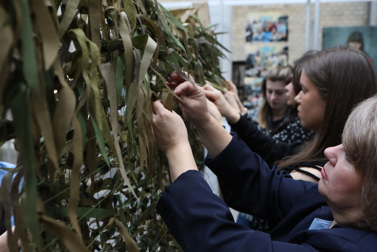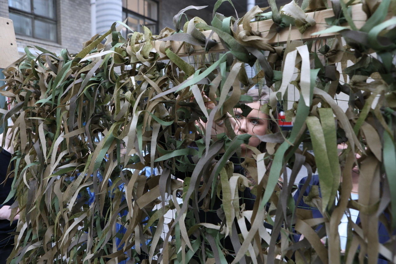 Несложные в исполнении, но эффективные в использовании – маскировочные сети представители «Женского движения Единой России» Санкт-Петербурга, «Молодой гвардии», ученики школы №350 Невского района и швейно-вязальный батальон «Шьем Победу Питер» мастерили с особым интересом. По технике «галстук» каждый лоскут спанбонда – прочного синтетического материала – вплетали в основу камуфляжного полотна.