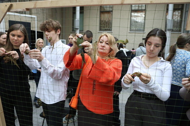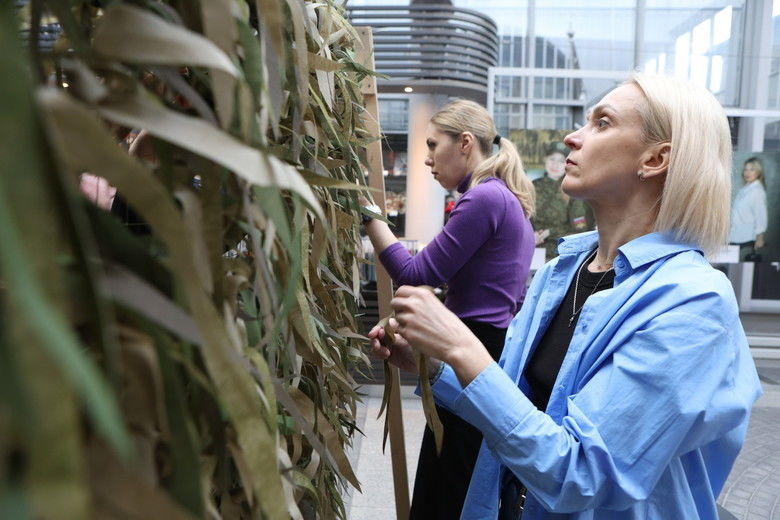 «Процесс создания сети основан на ручном подборе цветов. Мы самостоятельно определяем, какие оттенки и в каком объеме добавить, ориентируясь на визуальный эффект. Например, для усиления коричневых тонов достаточно вплести дополнительные полосы соответствующего цвета, так называемые «галстуки». Это позволяет гибко адаптировать сеть под любой ландшафт без строгих схем», – сказала руководитель волонтерского движения «Шьем Победу Питер», директор благотворительного фонда «Невская заря» Елена Лимонова.