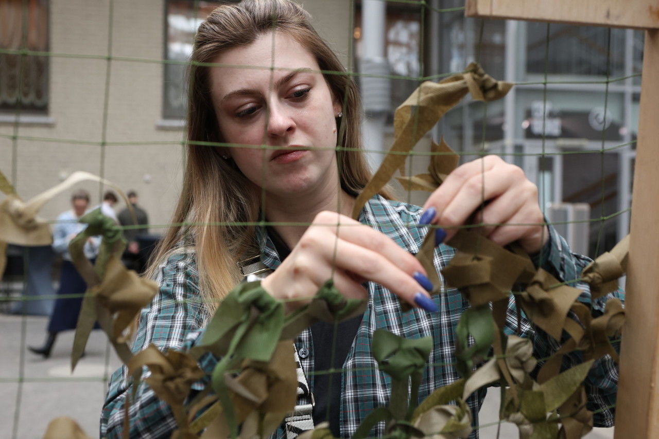 Искусство маскировки: активисты сплели уникальную камуфляжную сеть для бойцов СВО