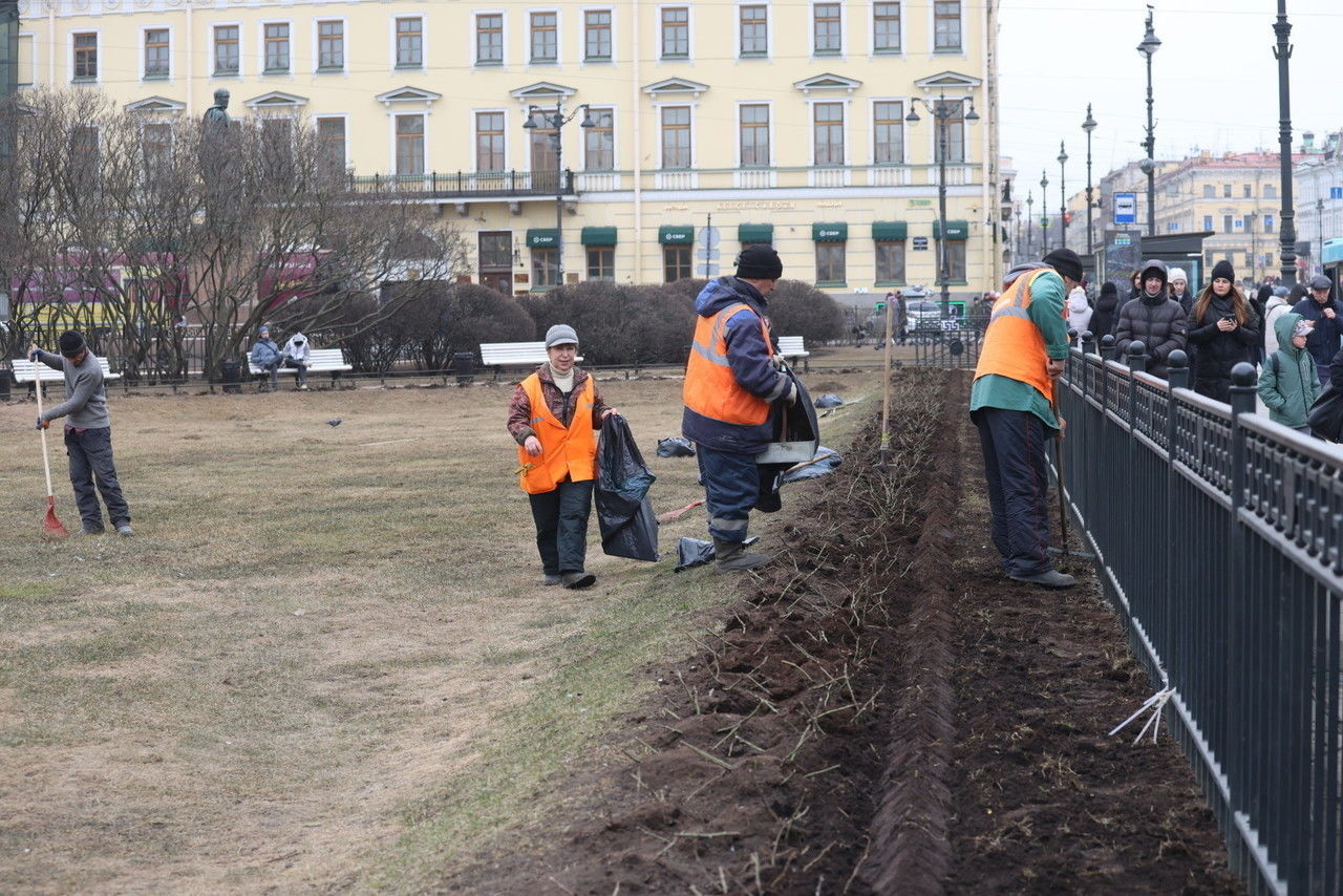 В садах и парках Санкт-Петербурга приступили к весенней уборке