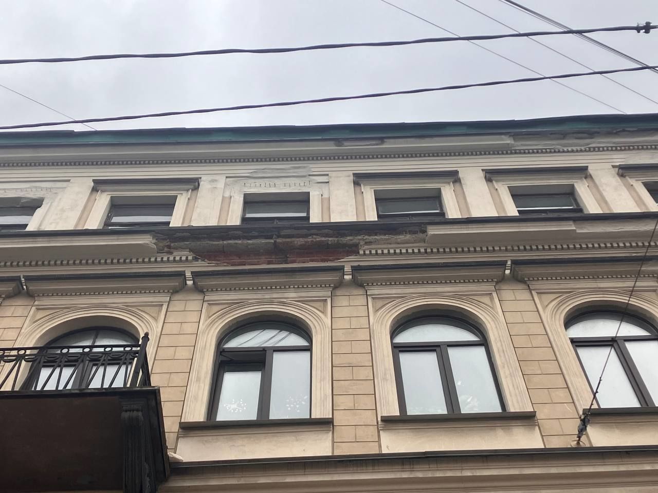 В центре Петербурга с фасада здания обвалился кусок карниза