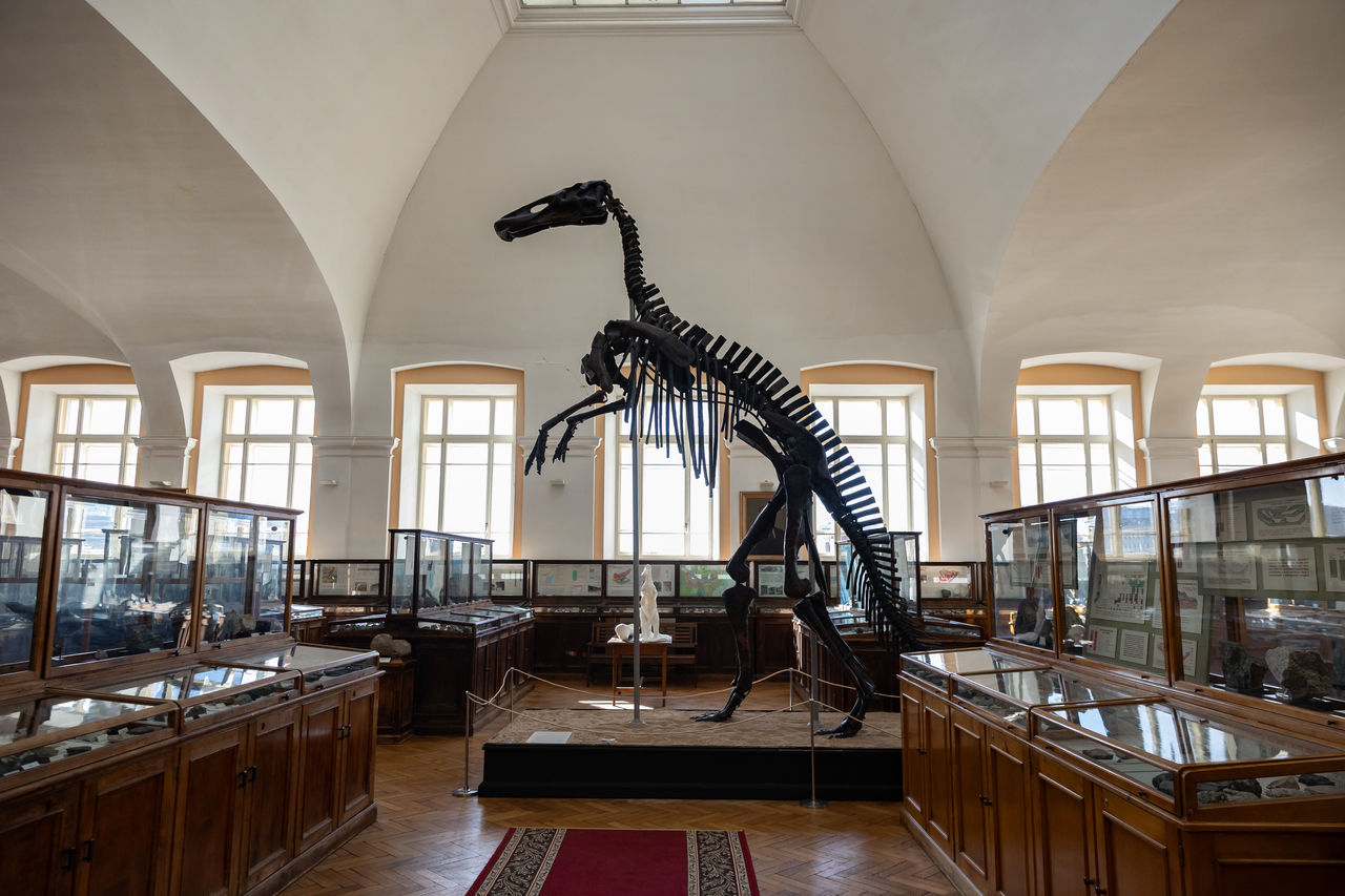 Настоящие кости древних обитателей планеты можно будет увидеть в знаменитом Геологоразведочном музее Института Карпинского. Участников туда, конечно, пригласят. Там можно будет познакомиться с почетным обитателем – манчжурозавром, который недавно отпраздновал столетний юбилей. Точная дата его рождения неизвестна: примерно 100 миллионов лет назад. Дата смерти неизвестна тоже (примерно 100 миллионов лет назад). Это первый смонтированный скелет данного вида динозавров в России. Его история началась ещё в 1914 году, когда геолог и палеоботаник Африкан Криштофович привёз с берегов Амура несколько фрагментов скелета. А в 1925 году палеонтолог Анатолий Рябинин и реставратор Яков Эглон представили смонтированный скелет высотой около 4 с половиной метров и длиной 8 метров.