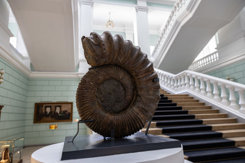 В известняковых породах имеются окаменевшие образцы древней флоры и фауны. Определить их возраст потребуется еще на одном тесте. Для этого даже не придется ездить по городу: идеальные образцы вмурованы непосредственно в лестницу Института Карпинского.