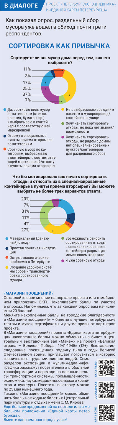 Опрос, проведенный изданием «Петербургский дневник» совместно с порталом «Единая карта петербуржца» (ЕКП), показал, как жители города сортируют мусор.