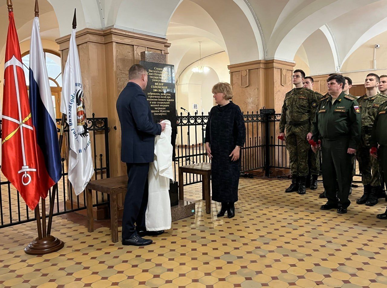 Елена Чернова также отметила, что в 2023 году университет подписал соглашения с учебно-методическим центром военно-патриотического воспитания «Авангард», в рамках которого на территории учебного заведения будет открыта аллея героев. По договоренности с администрацией Василеостровского района там будет высажено 10 деревьев. Одно из них будет названо именем Федора Соломонова. Почтить память героя также приехал вице-губернатор Санкт-Петербурга Игорь Потапенко. Он выразил соболезнования матери студента и возложил цветы к стеле.