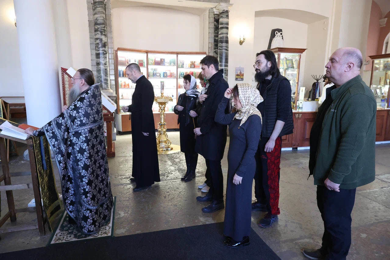 В годовщину теракта в кафе на Университетской набережной Петербурга, в котором погиб военкор и блогер Максим Фомин (творческий псевдоним – Владлен Татарский) и пострадали более 50 человек, в Благовещенской церкви Александро-Невской лавры были совершены благодарственный молебен о здравии выживших и панихида по погибшему журналисту.