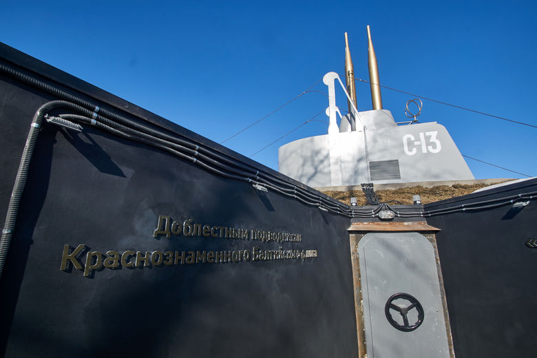 Проект под таким названием, открытый в Кронштадтском доковом адмиралтействе на территории парка «Патриот» Минобороны, – это не настоящая подводная лодка, а макет её внутреннего устройства в масштабе один к одному. Земляной холм над бывшим бомбоубежищем по форме напоминает силуэт корпуса идущей в надводном положении субмарины. Картину дополняет возвышающийся над ним макет рубки подводной лодки. На нем белой краской нанесена надпись «С-13». Подвигу экипажа легендарной лодки и её командира – Героя Советского Союза капитана 3-го ранга Александра Маринеско и посвящена главная часть экспозиции.