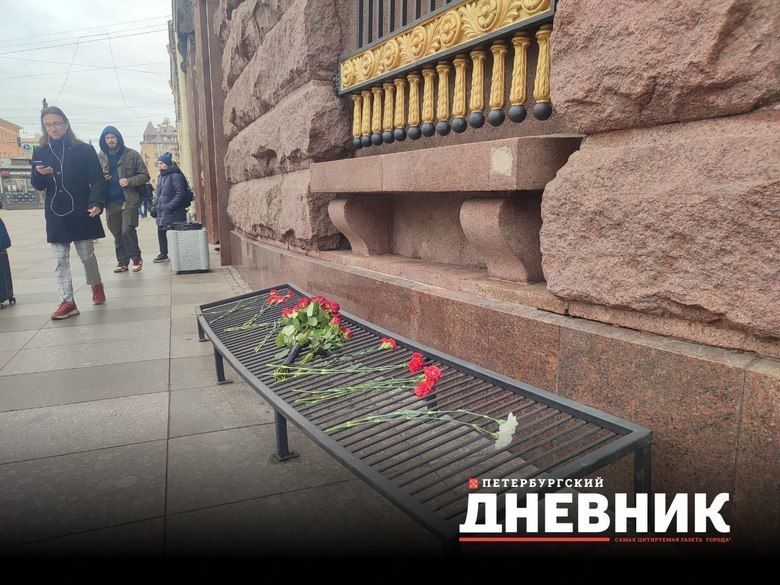 Жители Петербурга в четверг, 3 апреля, несут цветы к станции метро «Технологический институт», где в 2017 году произошел теракт, сообщает корреспондент «Петербургского дневника».