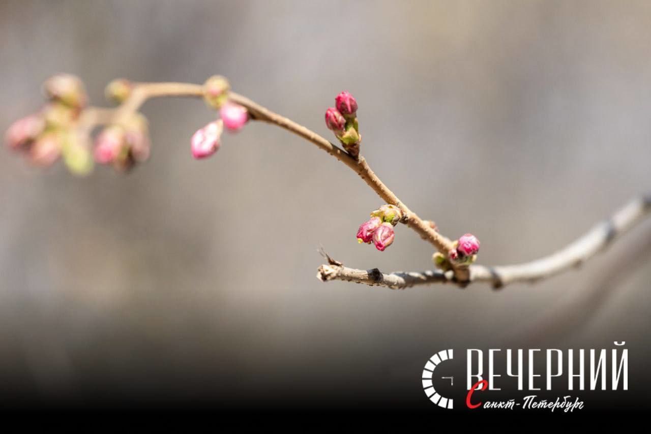 В Петербурге в Саду дружбы начали распускаться первые цветы сакуры. Фотограф «Вечернего Санкт-Петербурга» Олег Золото сообщил о появлении нескольких одиночных бутонов.