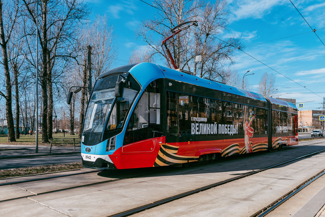 В Петербурге на улицы вышли трамваи и троллейбусы с символикой Великой Победы