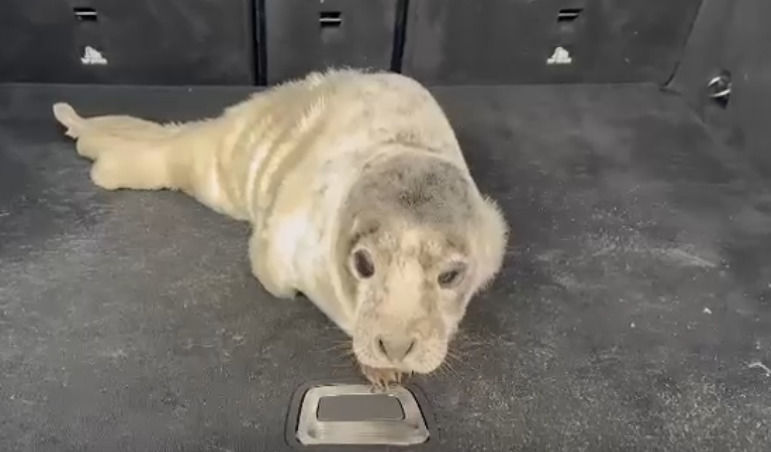 Мужчина доставил животное в Центр помощи морским млекопитающим. Малыш выглядит худым и изможденным. Тюлененку окажут необходимую помощь.
