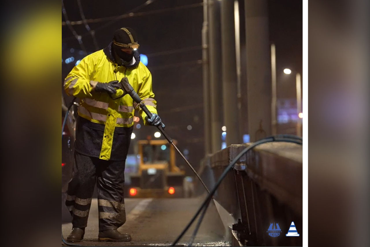 В рамках месячника благоустройства специалисты «Мостотреста» приступили к гидромониторной очистке мостов и других дорожных сооружений города. Цель работ – удаление остатков песко-соляной смеси и грязи, накопившихся за зимний период.