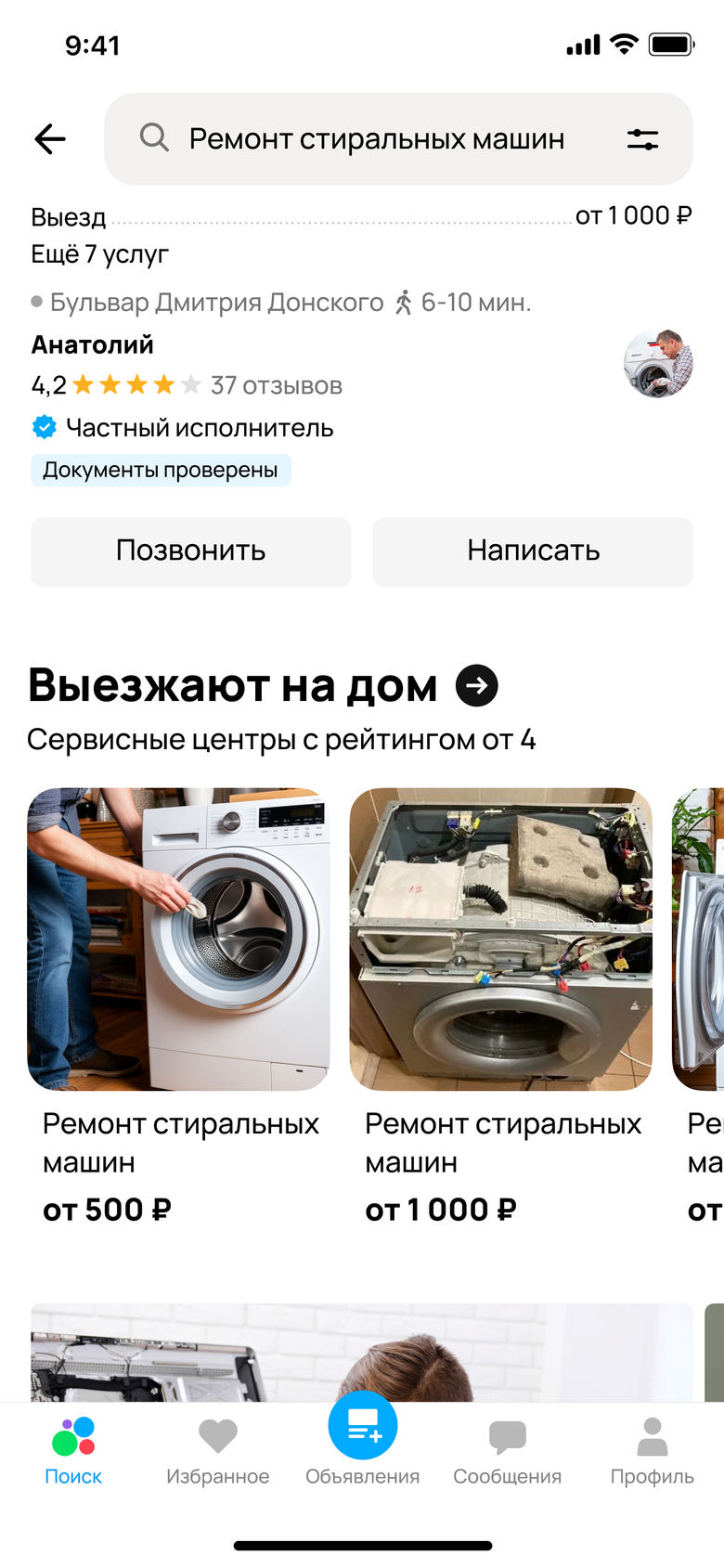 Также с помощью фильтра по типу исполнителя «Сервисный центр» для них создан специальный раздел в поисковой выдаче. Для ремонта крупной бытовой техники и компьютерной помощи – «Выезжают на дом. Сервисные центры с рейтингом от 4*». Для ремонта мобильных устройств, телевизоров, принтеров, игровых приставок, кофемашин, швейных машин и оверлоков появился раздел «Рядом с вами. Сервисные центры с рейтингом от 4*».