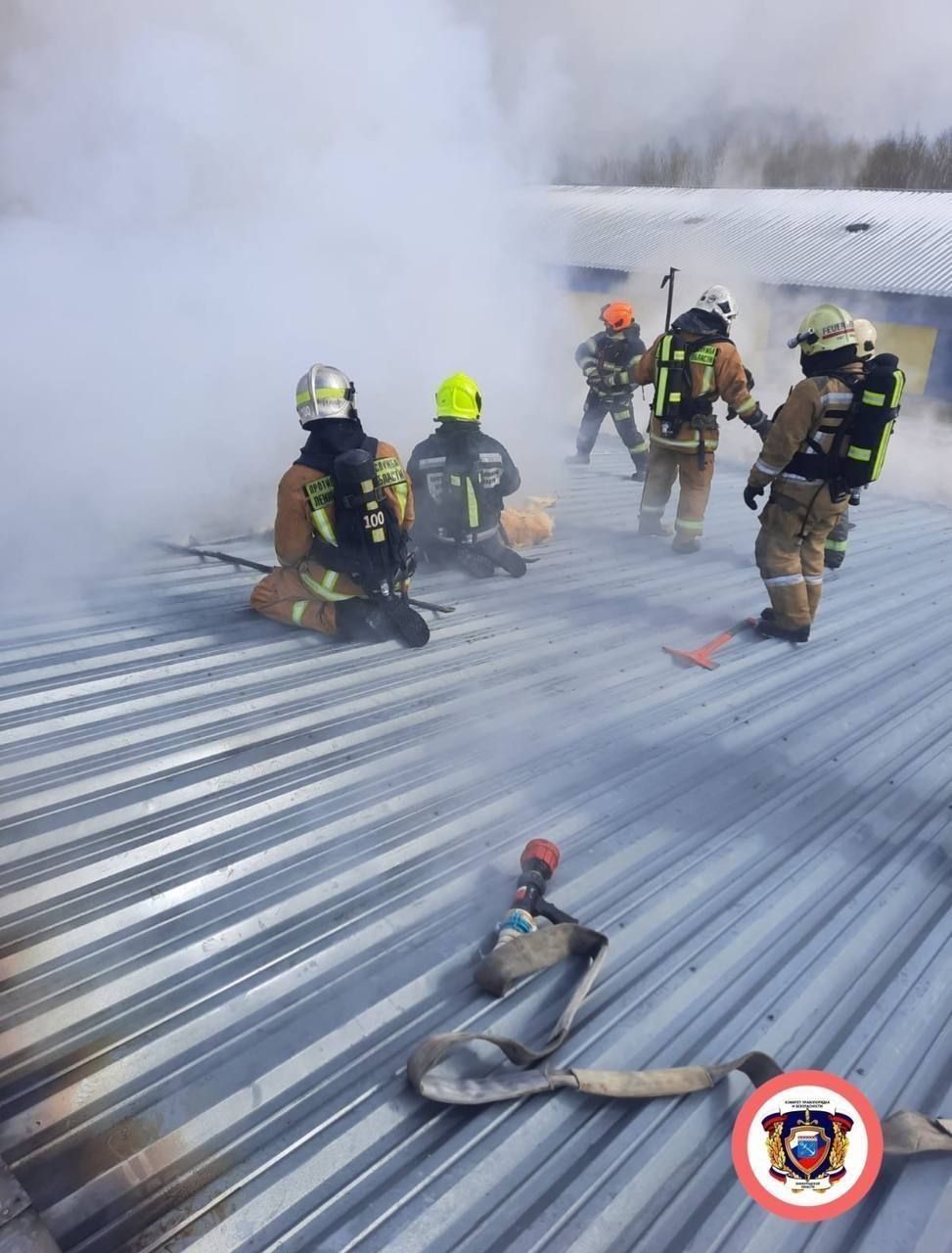 Видео: спасатели тушат под Петербургом ангар свиноводческого комплекса