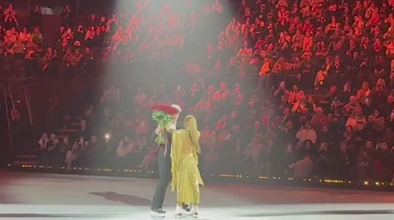 Песков встал на коньки, чтобы поздравить Навку с юбилеем
