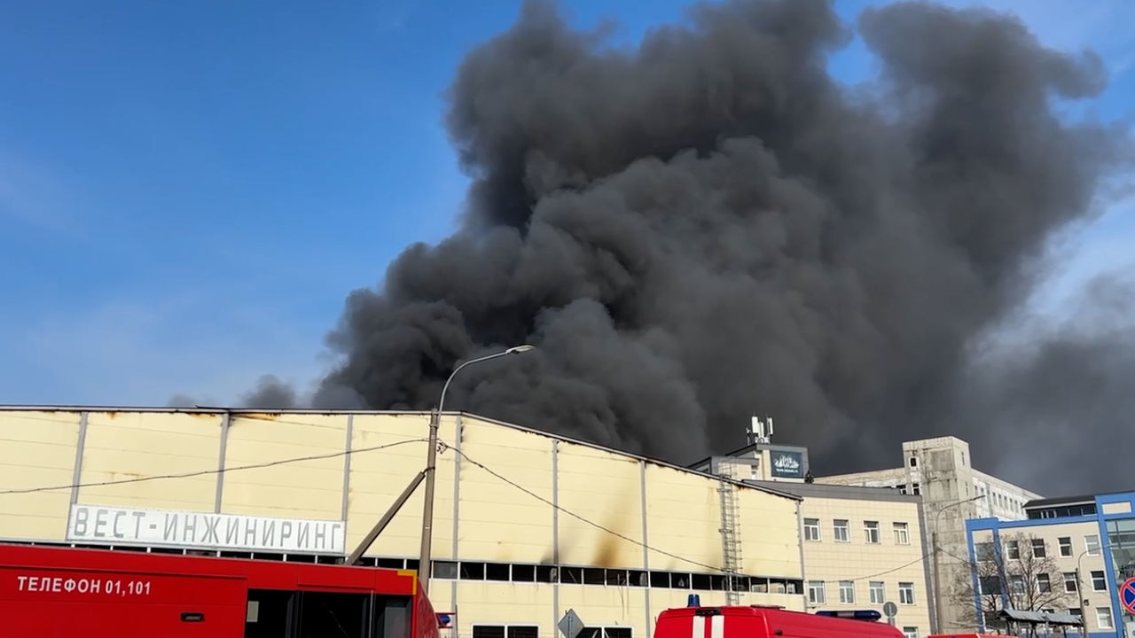 Видео: очевидица рассказала, как начался пожар в ангаре на улице Маршала Новикова в Петербурге