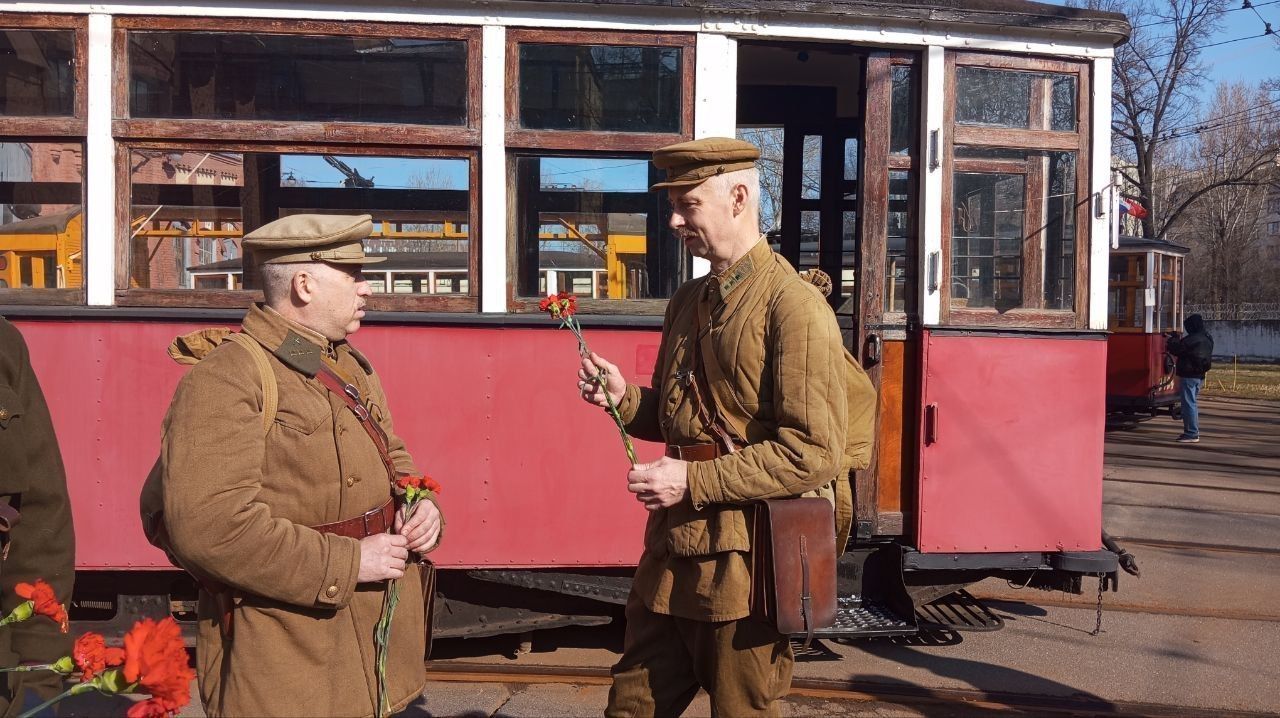 Под мемориальной доской «Подвигу трамвайщиков блокадного Ленинграда» на стене трамвайного парка №3 лежат алые гвоздики. Именно отсюда 15 апреля 1942 года отправились первые трамваи после суровой, долгой зимы. И отсюда, спустя 83 года, вновь отправляются те самые блокадные трамваи.