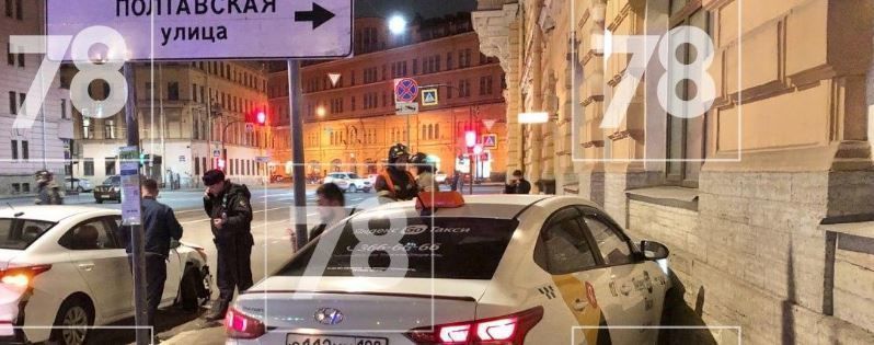 В результате такси выкатилось на тротуар и врезалось в стену дома. В машине находились водитель и пассажир.