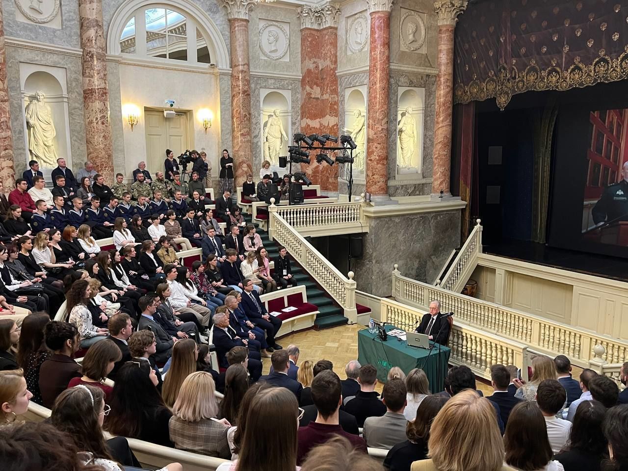 Генеральный директор Государственного Эрмитажа Михаил Пиотровский выступил с лекцией «Войны и победы в зеркале Эрмитажа». В мероприятии приняли участие студенты из десяти университетов Санкт-Петербурга, а также участники специальной военной операции. Организатором лекции стала Общественная палата Санкт-Петербурга.
