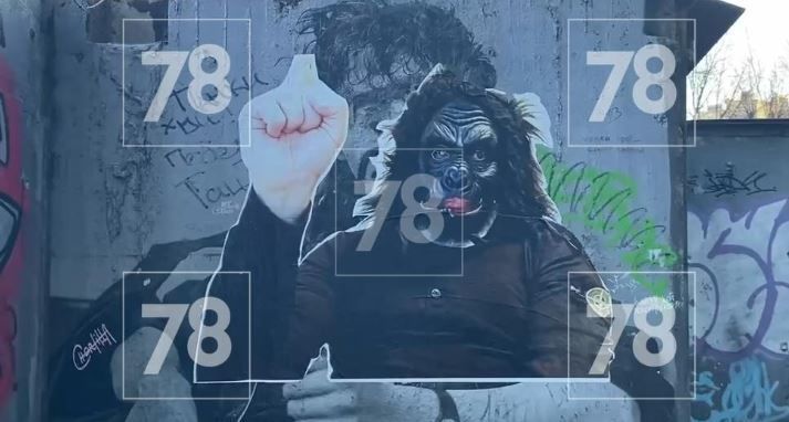 Неизвестные надругались над сквером Цоя в Любанском переулке и испортили один из портретов барда. Они разместили на изображение артиста фото умершего рэпера в маске обезьяны, в которой Техник выступал.