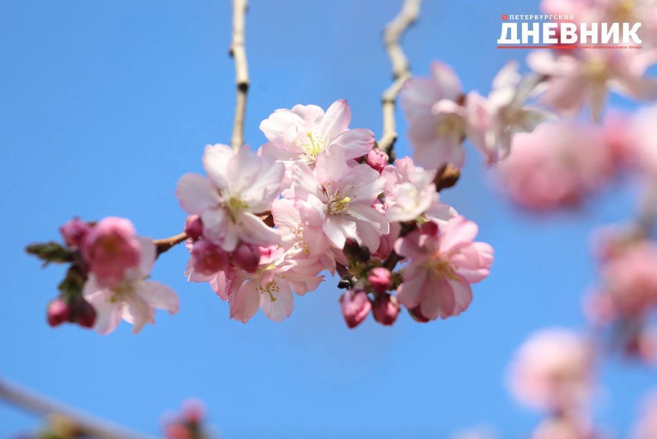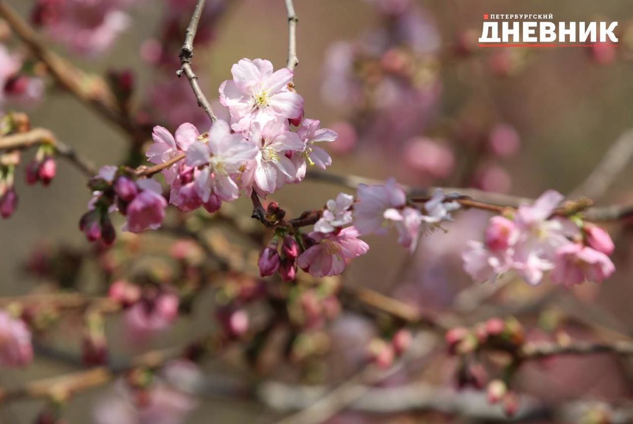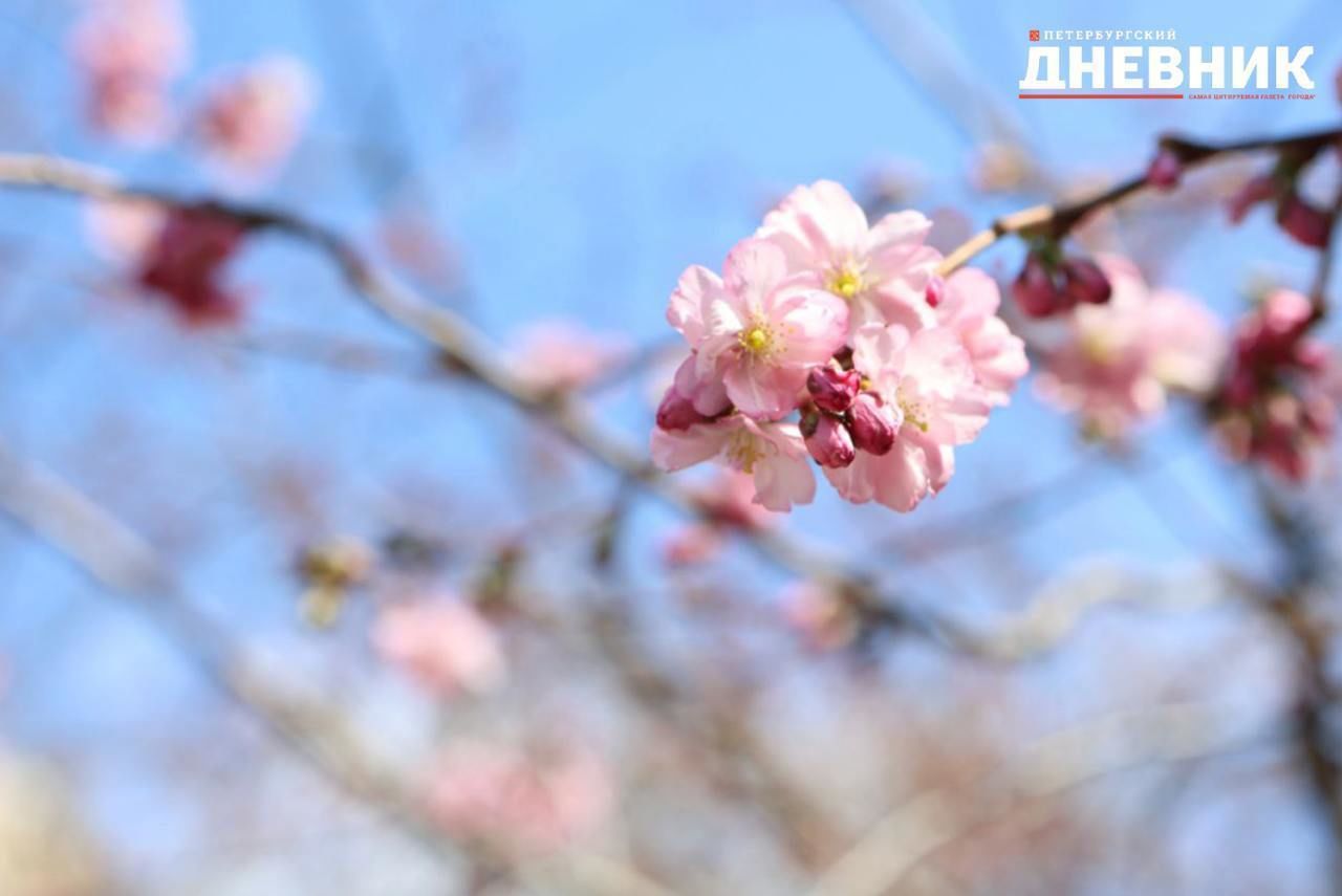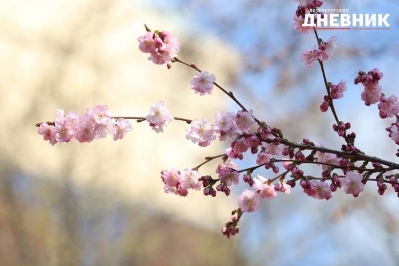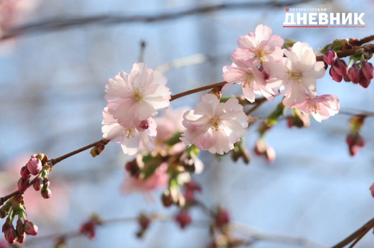 В Санкт-Петербурге зацвела сакура. Это связывают с теплой погодой, в результате чего дерево покрывается цветами гораздо раньше, чем обычно.