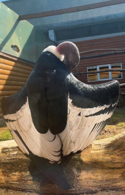 Ленинградский зоопарк показал, как андский кондор Ева очищает свои перышки