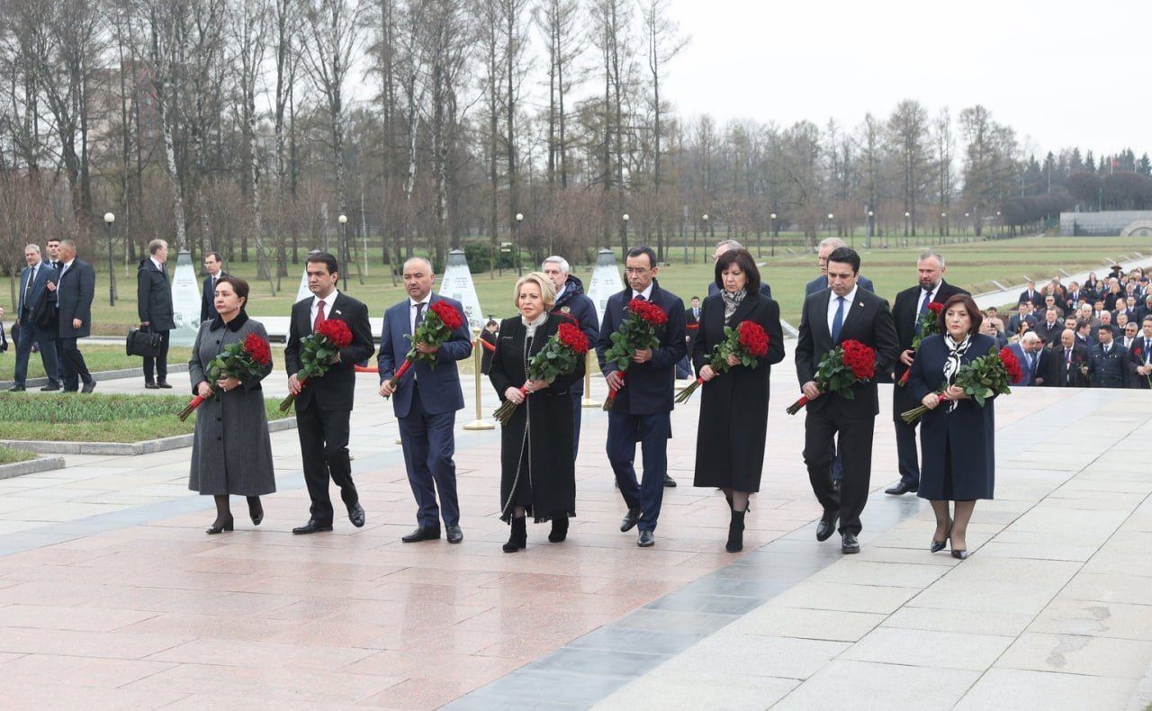 Председатели парламентов стран СНГ возложили цветы к мемориалу «Мать-Родина» на Пискаревском кладбище