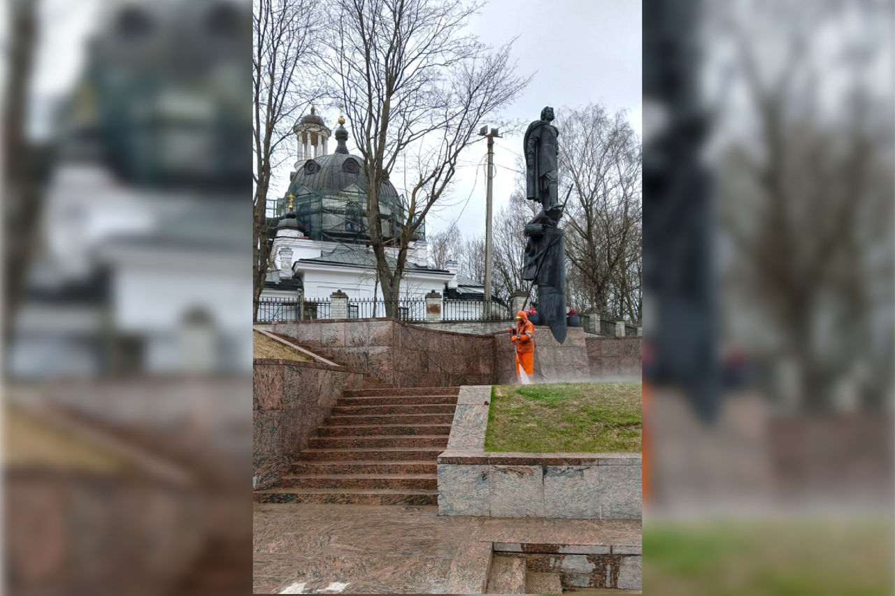 Специалисты отмыли гранитную набережную у памятника Александру Невскому в Усть-Ижоре