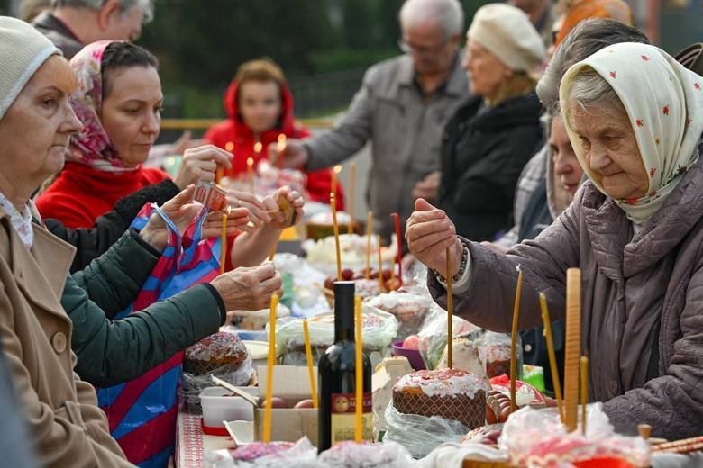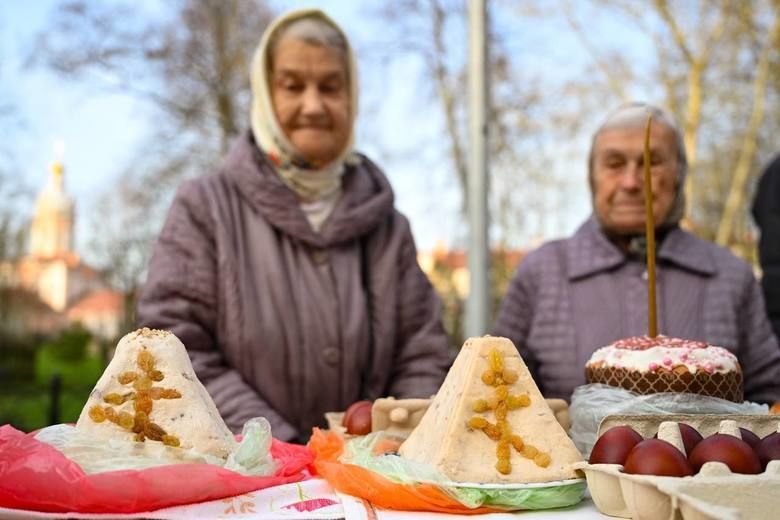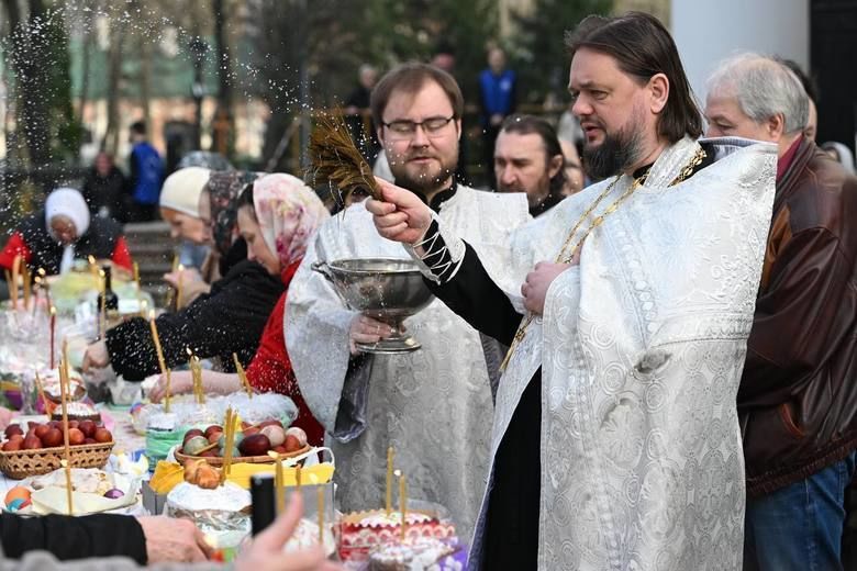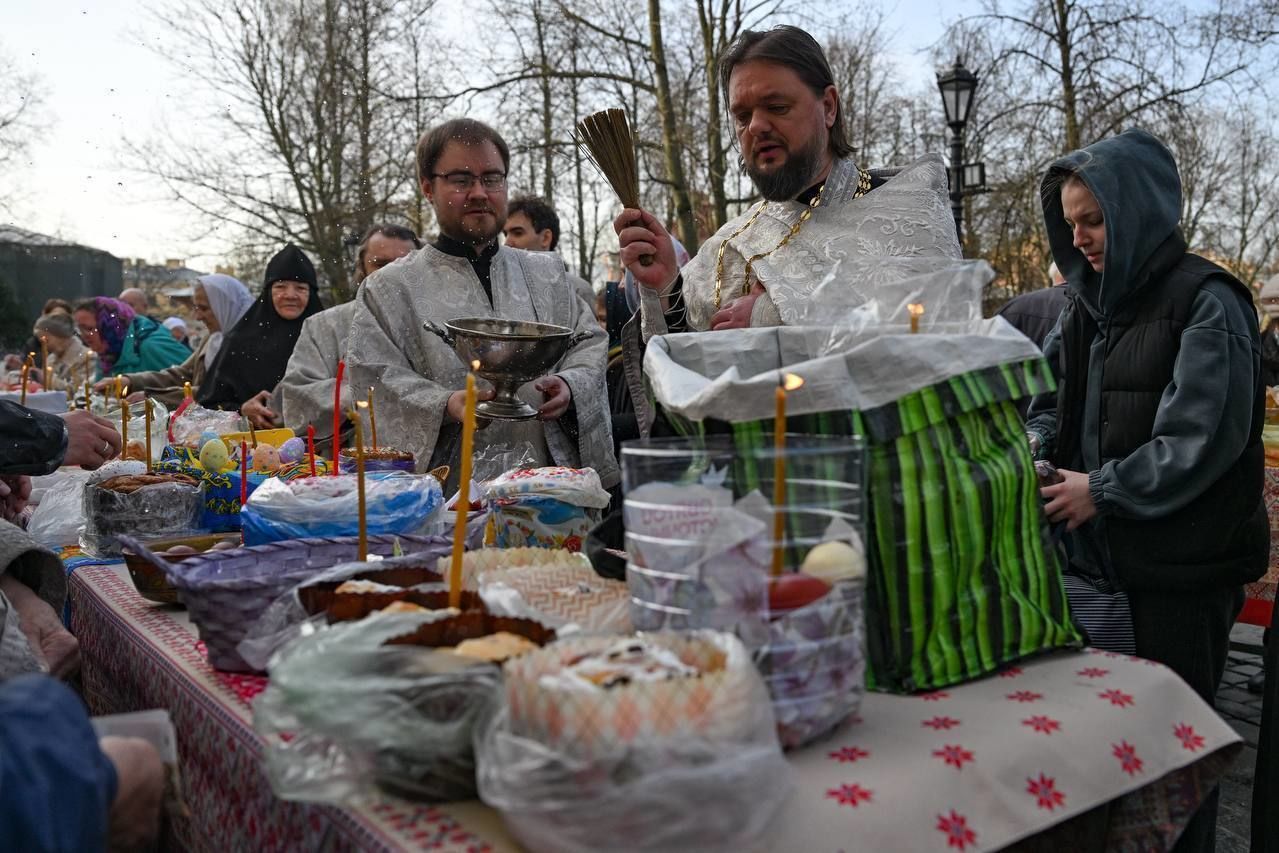 Тем временем куличи, пасхи и яйца освящают в храмах Петербурга. На фото – Александро-Невская лавра.