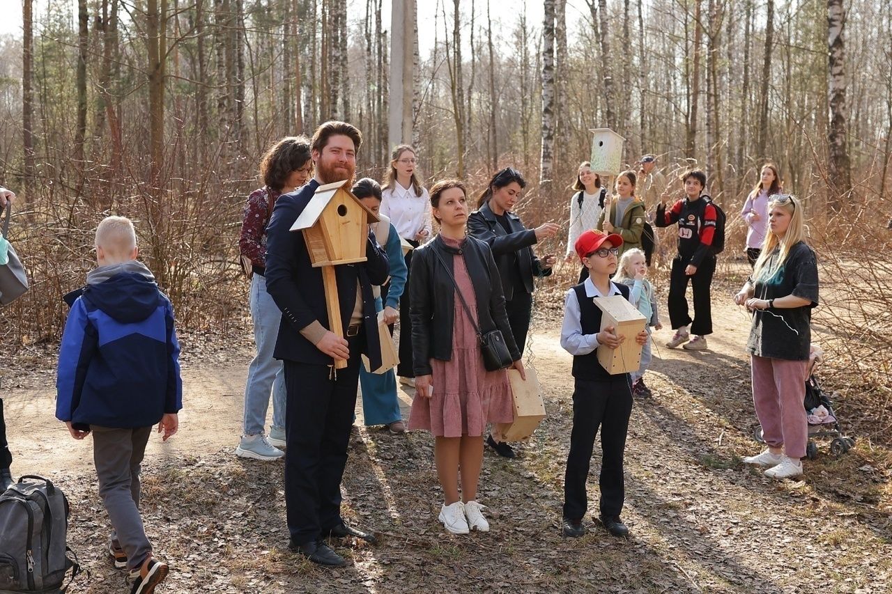 Петербуржцы вывесили скворечники в Пискаревском парке