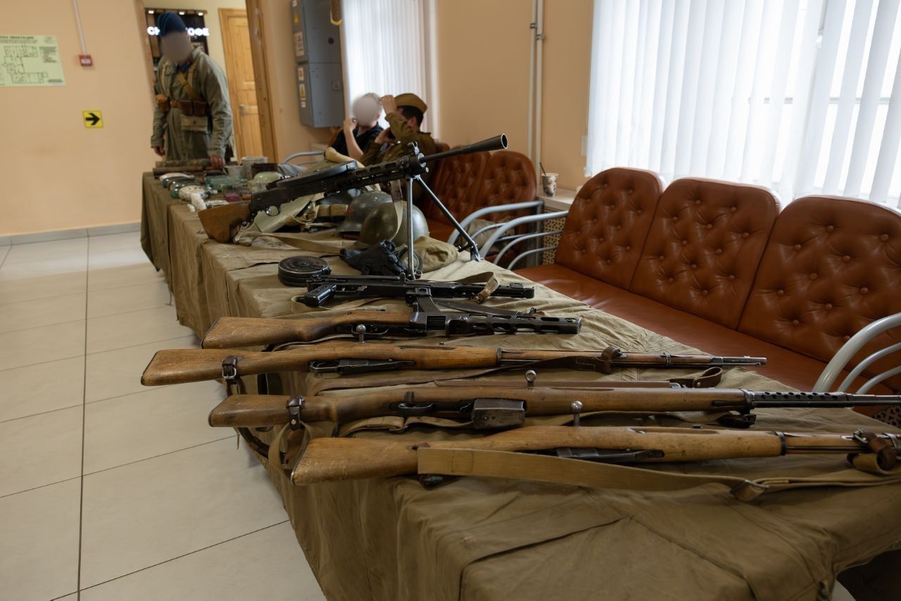 В фойе культурного центра развернули выставку с макетами оружия времен Великой Отечественной и найденными предметами.