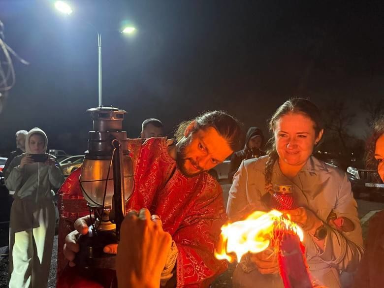 «Это семейная традиция, – делится Федор Кухарь, приехавший за огнем из Гатчины. – Мой отец много лет доставлял Благодатный огонь в Павловский собор. Теперь я продолжаю эту традицию как мирянин и алтарник. Сегодня наш священник, отец Владимир Феер, благословил меня отвезти огонь в храм, где сейчас идет праздничная литургия».