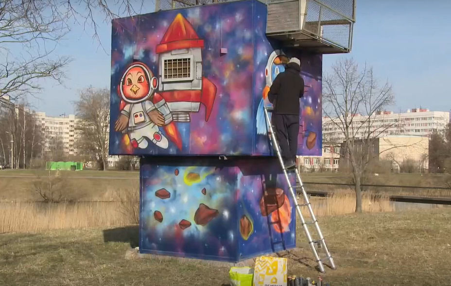 Космическую одиссею пернатых воплотил в своей работе петербургский художник Максим Юрченко. На этой неделе он закончил очередное эпичное полотно на стенах голубятни в Нижне-Ивановском сквере. Об этом сообщили в Комитете по благоустройству Петербурга.