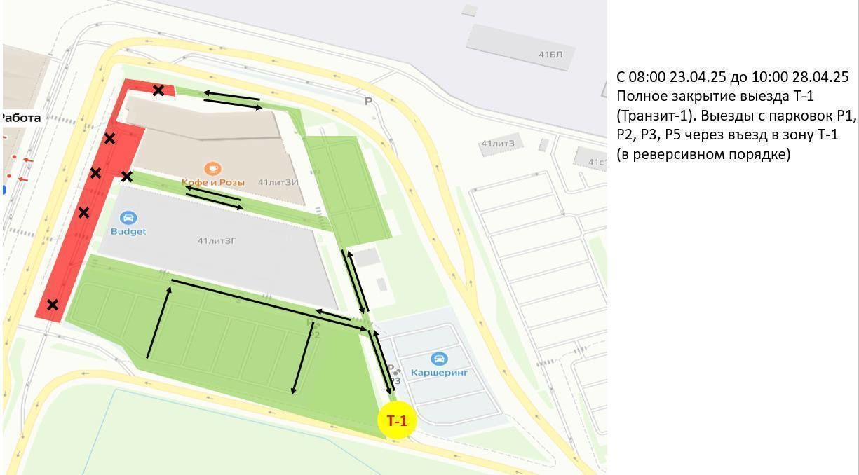 Пресс-служба компании «Воздушные ворота Северной столицы», оператор аэропорта Пулково, сообщила о закрытии выезда в зоне «Транзит-1» с 8:00 23 апреля в связи со строительными работами. Они продлятся ориентировочно до 28 апреля. Выезд будет осуществляться в реверсивном порядке через въезд в зону «Транзит-1».