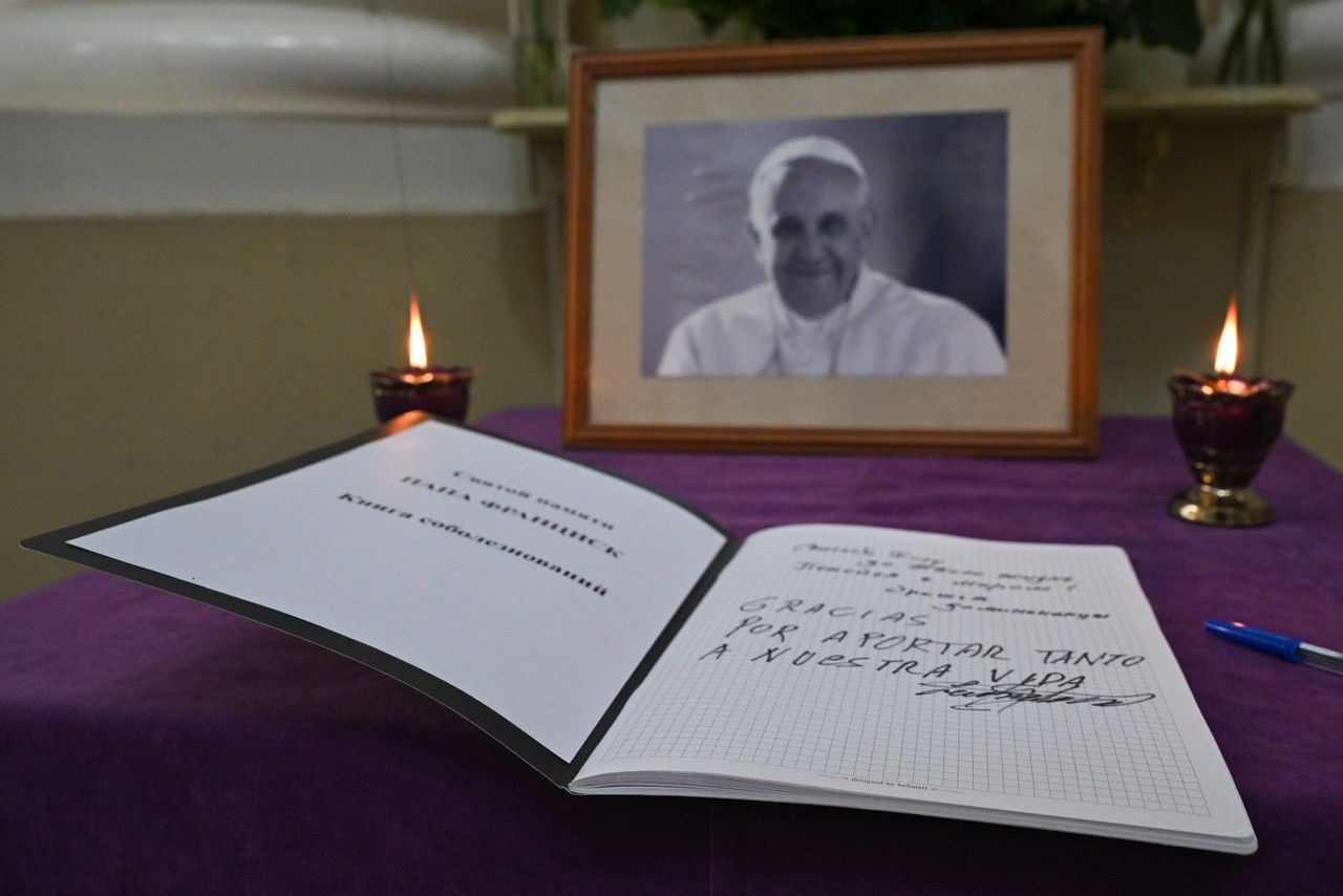 «У нас в соборе Успения Святой Девы Марии на 1-й Красноармейской улице, а также в базилике Святой Екатерины на Невском проспекте установлены портреты папы и выставлены книги соболезнований. В ближайшие дни любой человек может прийти в один из наших храмов, выразить свое почтение папе и оставить свое письменное соболезнование. Кроме того, в четверг, 24 апреля, в 19 часов в соборе на 1-й Красноармейской, дом 11, я буду служить торжественную заупокойную мессу, ведь смерть правящего понтифика – крайне важное событие для всей нашей общины. На эту мессу мы приглашаем не только верующих католиков, но и всех тех, кто хочет выразить свою скорбь, солидарность с нами и уважение к усопшему понтифику. Мы приглашаем на эту мессу всех желающих петербуржцев», – указал епископ.