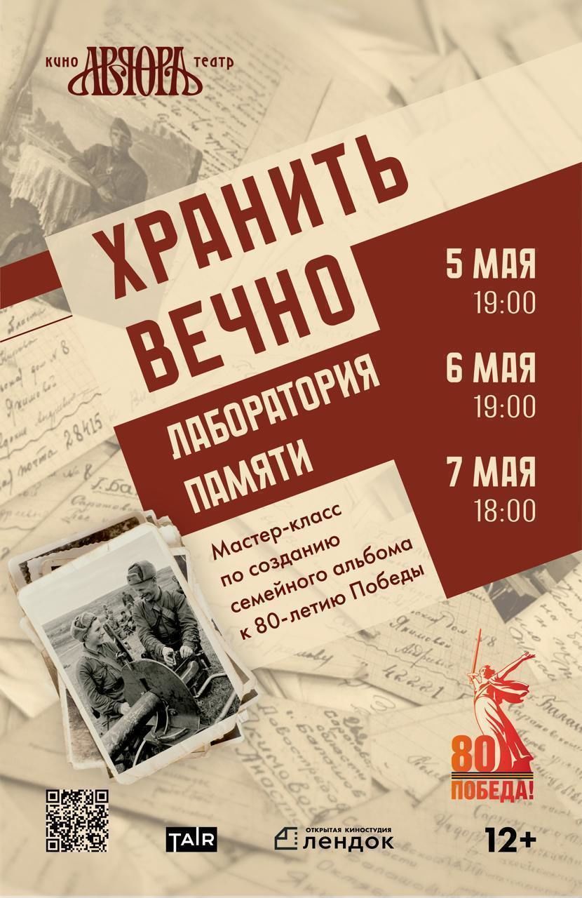 С 5 по 7 мая в кинотеатре «Аврора» состоится серия мастер-классов «Хранить вечно» (0+) по созданию семейного альбома к 80-летию Великой Победы. Участники смогут обзавестись семейной реликвией, а также посмотреть короткометражный фильм «После войны напомни, расскажу…» (12+) киностудии «Лендок». Количество мест ограничено.