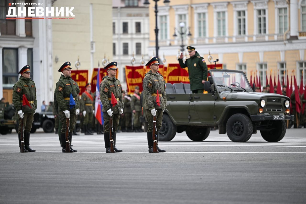 Сегодня в Петербурге прошла репетиция парада ко Дню Победы на Дворцовой площади. В центре нашего города собрались курсанты военной Академии войск национальной гвардии и военнослужащие региона. А для обеспечения безопасности движение по подъездам к площади, включая Дворцовый мост, приостановили на время репетиции. Всего в праздничном шествии 9 Мая участие примут около 5000 военнослужащих.