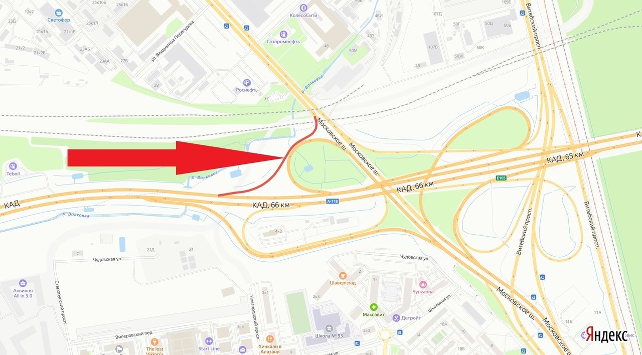 В Петербурге в ночь с 25 на 26 апреля перекроют съезд на развязке КАД с Московским шоссе
