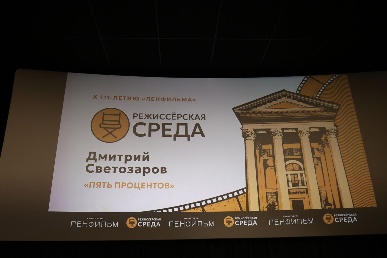 Режиссер Дмитрий Светозаров принял участие в проекте «Режиссерская среда» к 111-летию киностудии «Ленфильм» и представил свою комедию «Пять процентов» (18+).