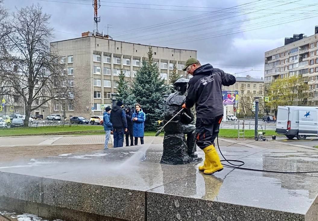 В Петербурге помыли памятник «Юнгам Балтики» ко Дню Победы