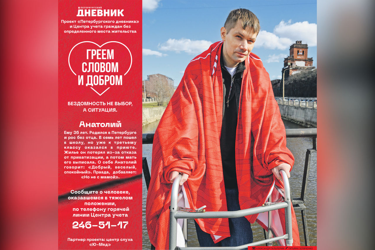 В рамках акции «Петербургского дневника» «Греем словом и добром» жителям города рассказали о 36-летнем Анатолии
