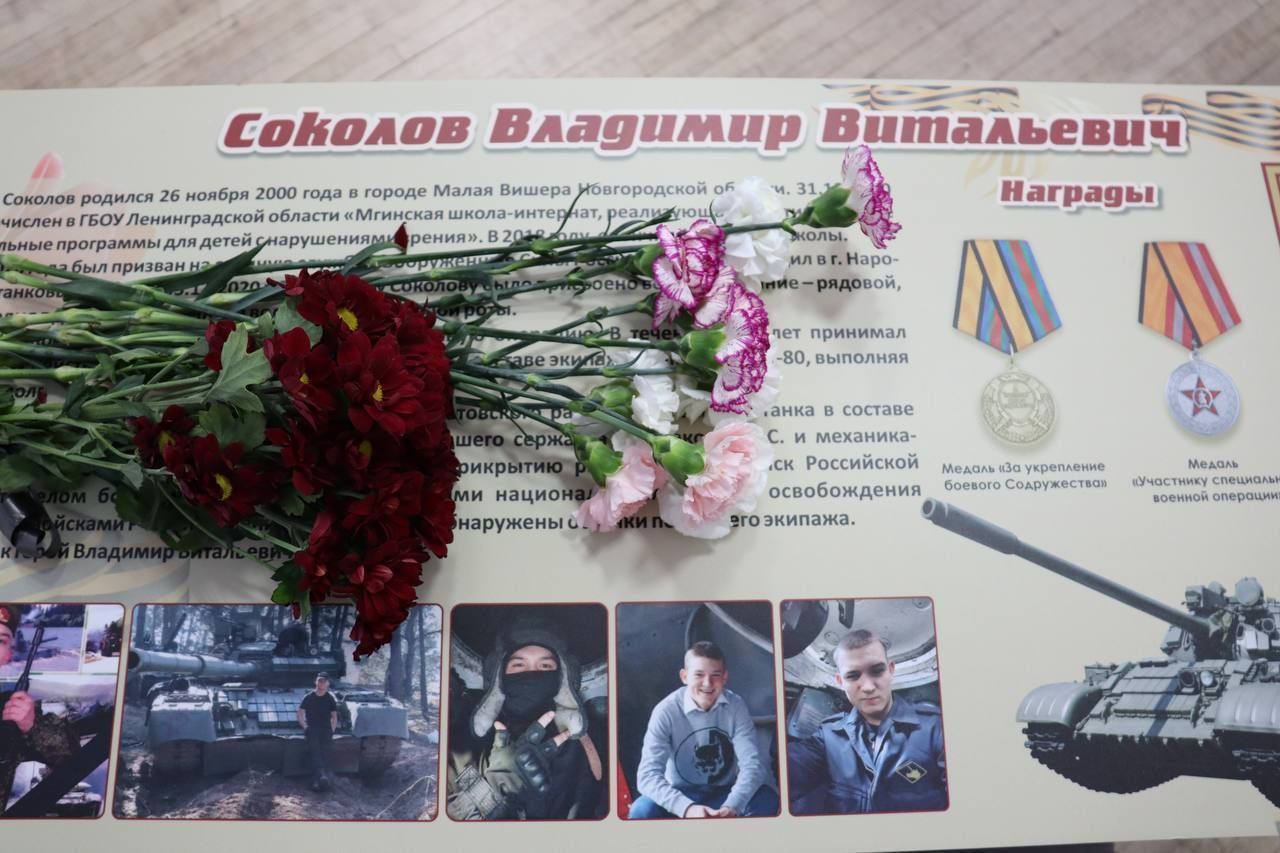 В Мгинской школе-интернате открыли парту, посвящённую выпускнику Владимиру Соколову, который с 2022 года участвовал в боевых действиях в ЛНР в составе экипажа танков Т-72 и Т-80. В августе 2023 года экипаж героически погиб в бою, сообщили в пресс-службе Комитета образования Ленобласти.