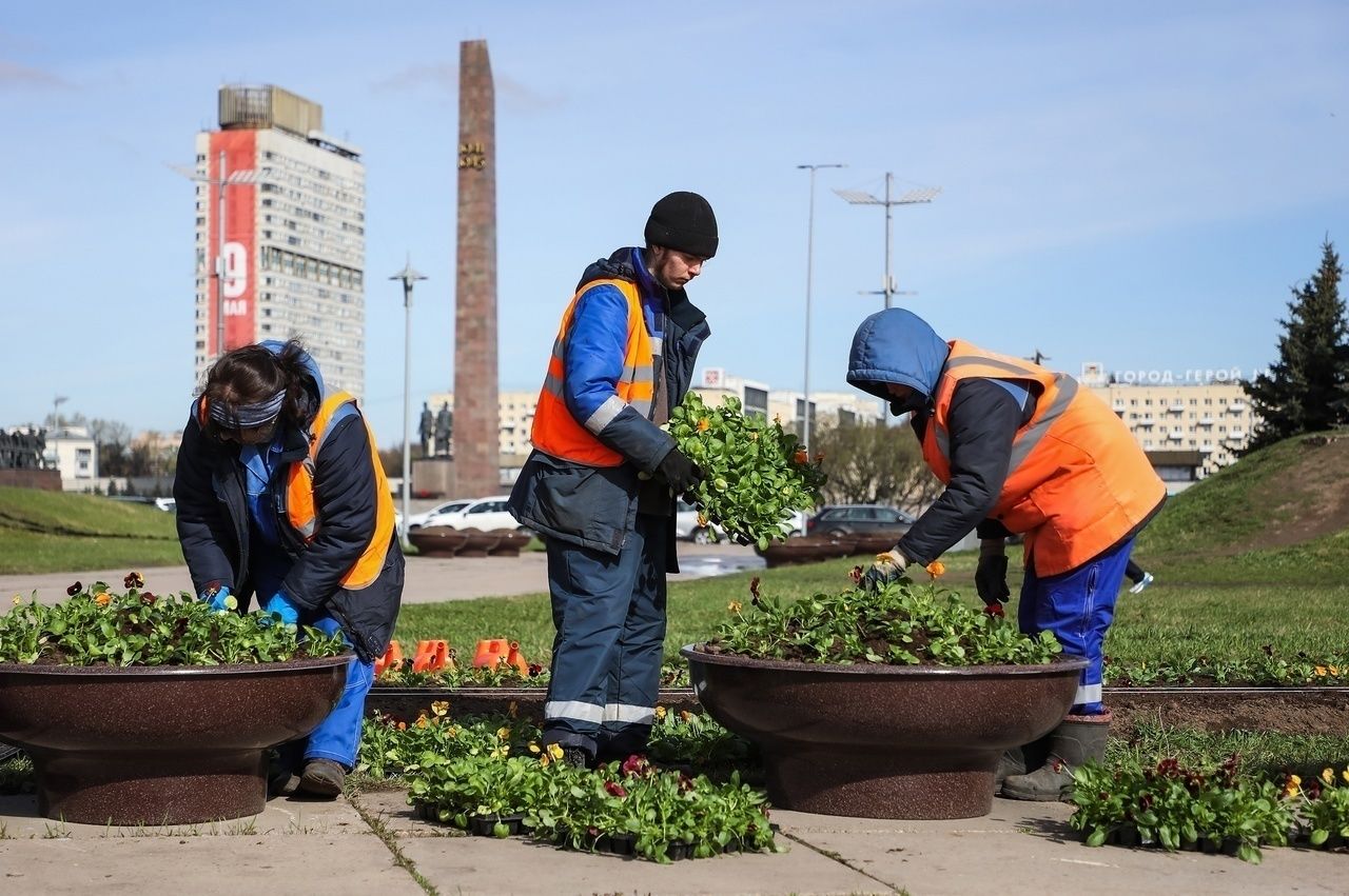 Садовники начали украшать Петербург цветами ко Дню Победы