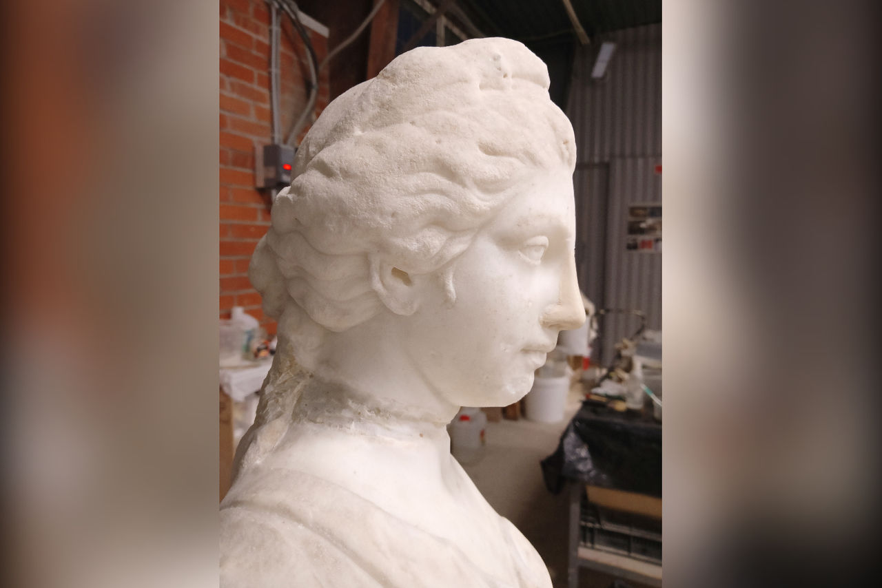 Как сообщили в пресс-службы ГМЗ «Павловск», многолетнее пребывание под открытым небом негативно сказалось на состоянии мрамора: он сильно выветрился, рисунок прически практически исчез, а на поверхности появились пятна и разводы. Исследование выявило наличие шести видов микроскопических грибов, поразивших камень.