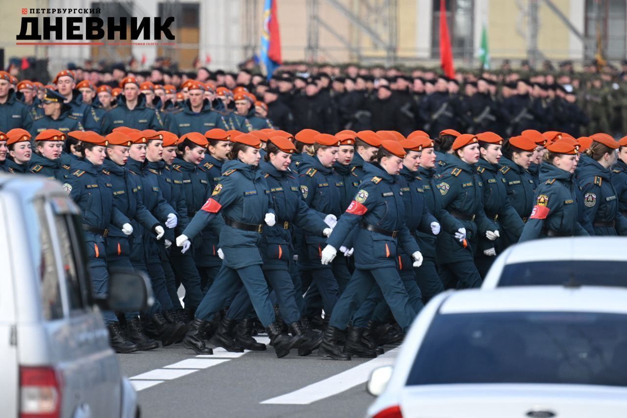 На Дворцовой площади в Петербурге состоялась репетиция парада Победы, посвященного 80-й годовщине победы в Великой Отечественной войне. В ней приняли участие более 5,5 тысячи военнослужащих и сотрудников силовых ведомств, в том числе свыше 200 росгвардейцев. «Петербургский дневник» публикует фотографии с репетиции.