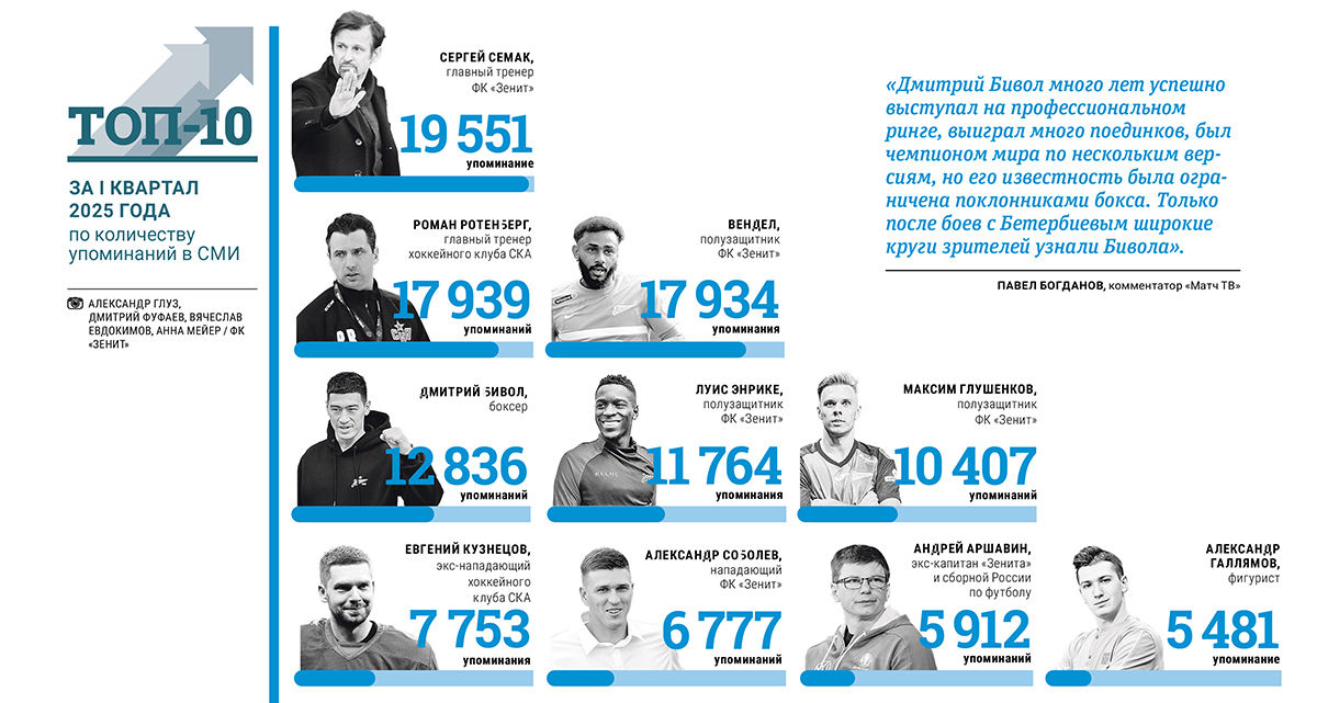 Спортсмены: кого чаще всего цитировали СМИ в первом квартале 2025 года