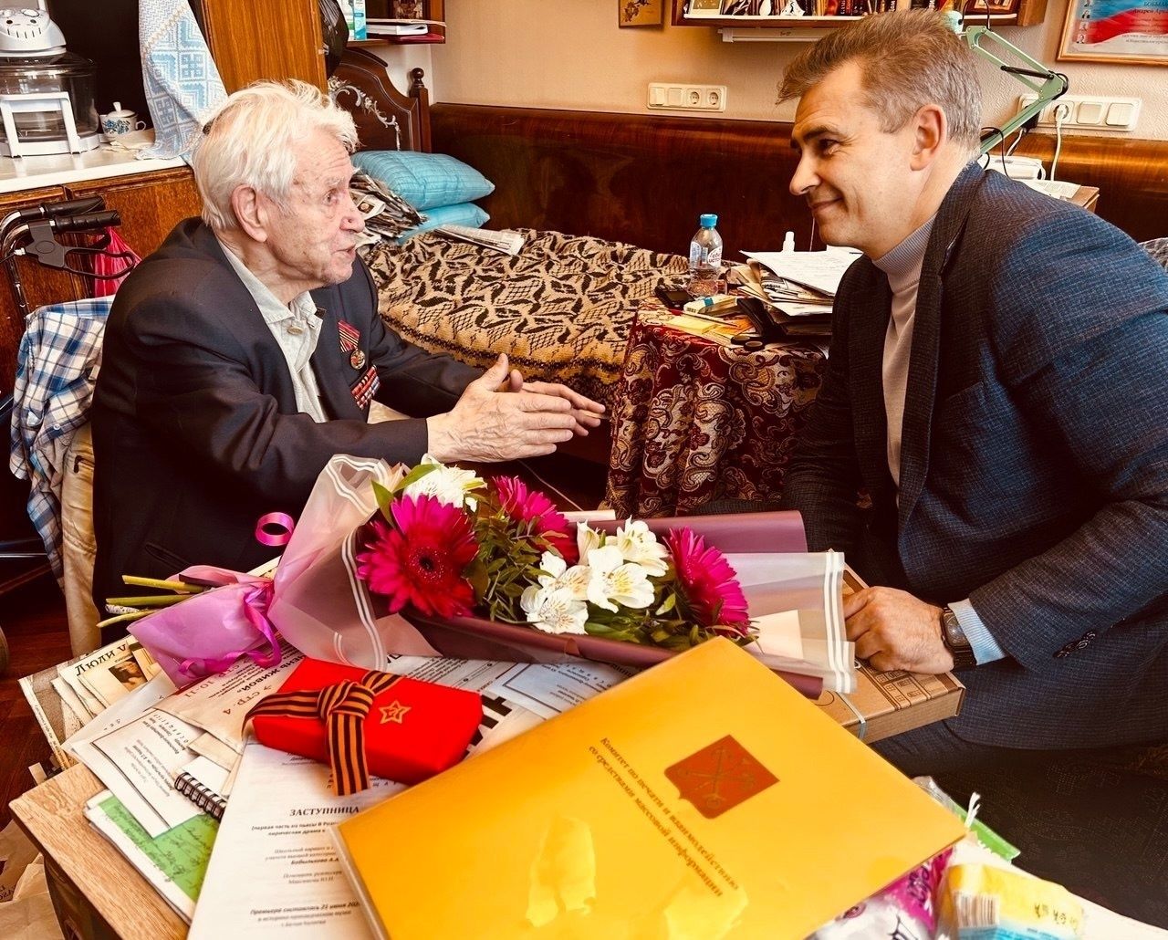 Председатель комитета по печати и взаимодействию со СМИ Владимир Рябовол навестил 98-летнего ветерана Великой Отечественной войны и театрального деятеля Андрея Бобылькова.